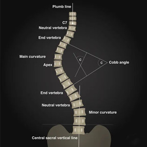 在 X 線平片上,脊柱側(cè)彎定義為偏離度大于 10 度。