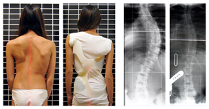青少年特發(fā)性脊柱側(cè)彎的特征是脊柱三維畸形伴有側(cè)彎加椎體旋轉(zhuǎn)。