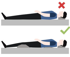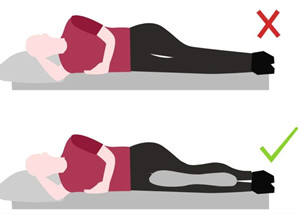 · 在不影響休息的情況下,在膝關(guān)節(jié)下面墊一個(gè)小枕頭,以及在腰椎下部可用毛巾卷起墊在下面更佳,保持身體原有姿勢(shì)穩(wěn)定。