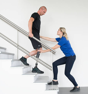訓(xùn)練中期:需要學(xué)會(huì)正確的發(fā)力方式,利用腰、胯、大腿共同發(fā)力,避免單個(gè)部位過(guò)度用力,造成肌肉損傷,增加協(xié)調(diào)性。外出可以先用拐杖輔助,逐漸適應(yīng)假肢后再脫掉拐杖獨(dú)立行走。
