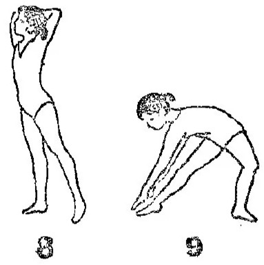 9、身體向右側(cè)屈,雙手觸到右腳趾。